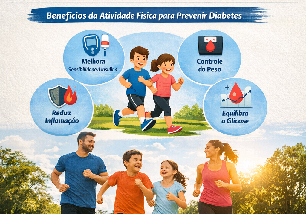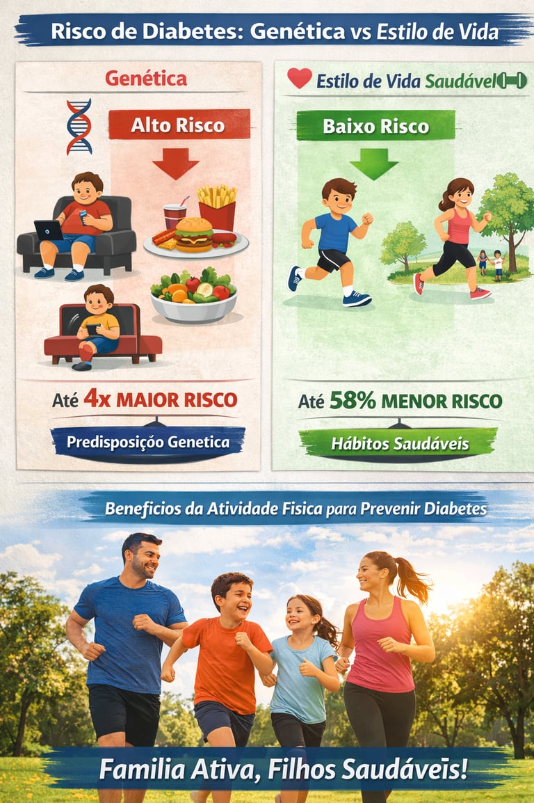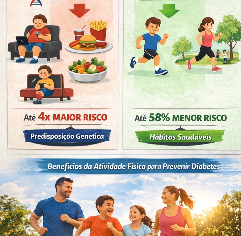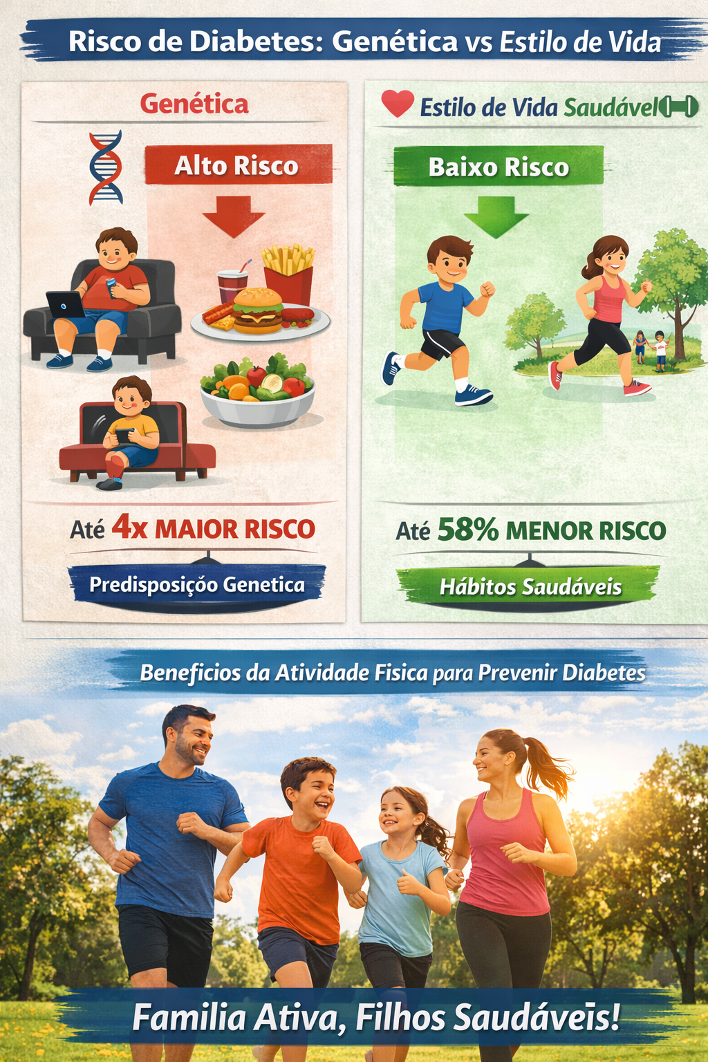 📊 Estudos mostram que pessoas fisicamente ativas podem neutralizar parte do risco genético para diabetes.